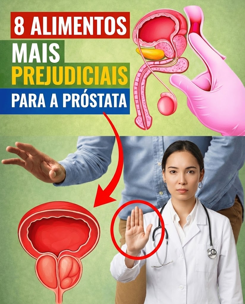 Nenhum alimento isolado causa problemas, mas o consumo frequente de certos itens tem mostrado consistentemente ligações observacionais com inflamação ou aumento das preocupações com a próstata em meta-análises e grandes coortes.