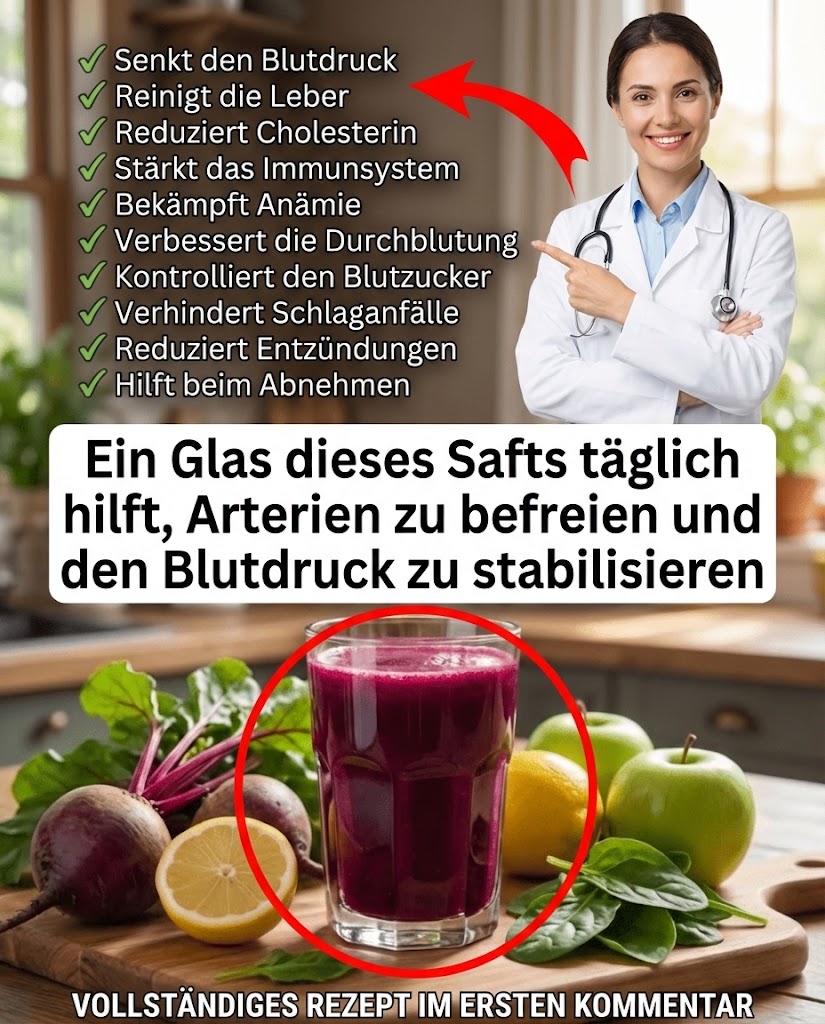 Wenn du über 45 bist, hattest du vielleicht schon Momente, in denen sich leichte Müdigkeit oder gelegentliche Schwindelgefühle wie Warnzeichen deines Kreislaufsystems anfühlten? Was wäre, wenn genau dieses einfache, farbenfrohe Getränk aus roter Bete und Zitrone deinen Blutfluss und Blutdruck auf natürliche Weise unterstützen könnte? Lies weiter, denn hier kommen 15 überzeugende Gründe, warum ein Glas täglich einen Unterschied machen kann.