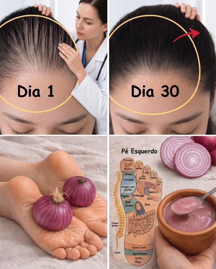 O uso tradicional de suco de cebola no couro cabeludo pode estimular a circulação e fornecer enxofre para fortalecer os folículos.