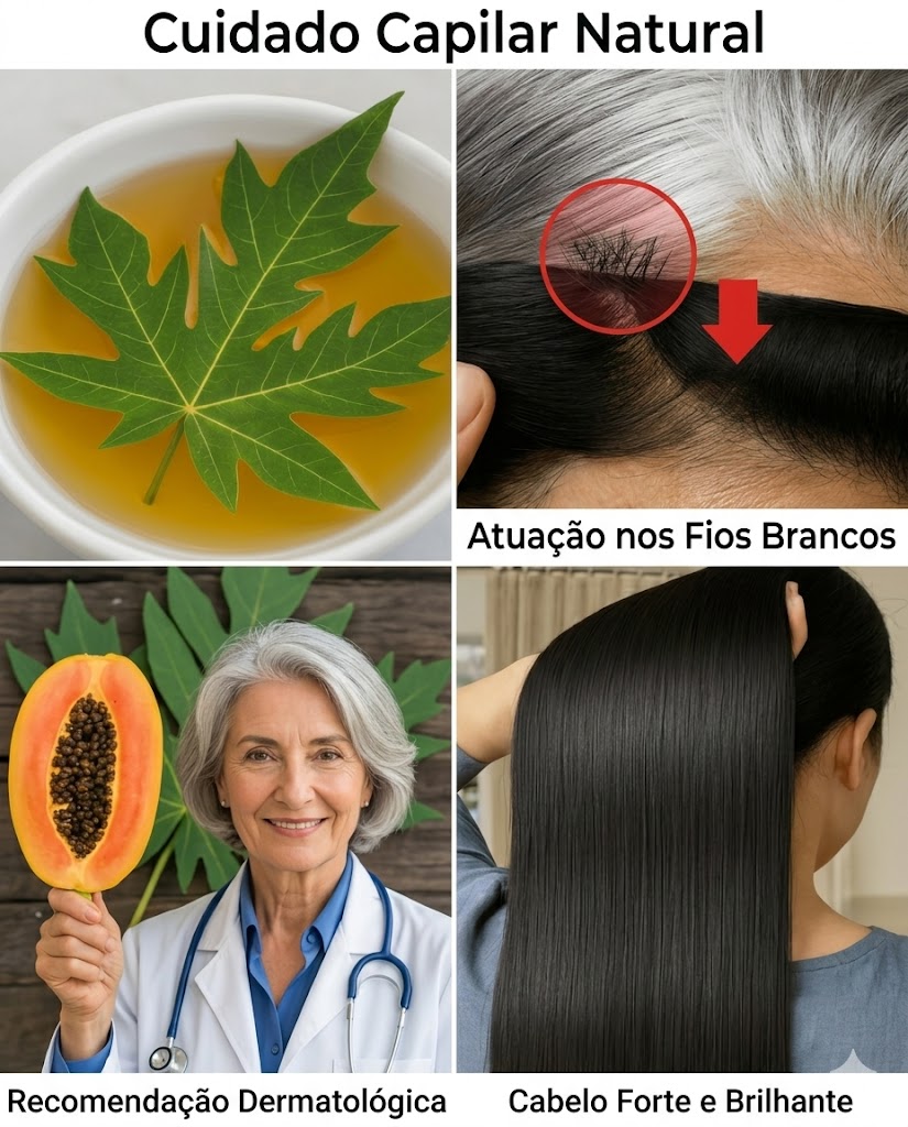 As folhas de mamão são ricas em antioxidantes, enzimas naturais como a papaína e vitaminas A, C e E. Esses nutrientes ajudam a nutrir os folículos capilares, melhorar a circulação no couro cabeludo e reduzir inflamações que podem causar queda de cabelo.