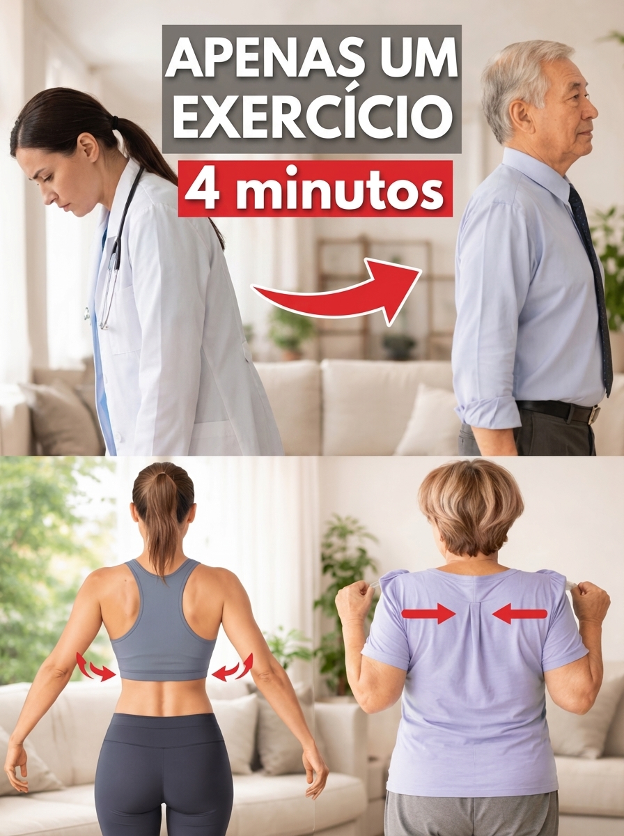 Ao chegar aos 60 anos, muitas mudanças surgem sem aviso. Uma das mais comuns é perceber a cabeça inclinando-se para frente, os ombros arredondando e a parte superior das costas ficando mais curvada com o tempo. Essa postura cria tensão constante no pescoço e na coluna, causando desconforto, cansaço durante o dia, respiração mais curta e até sensação de instabilidade ao caminhar. Tarefas simples podem parecer mais cansativas. Mas há uma boa notícia: uma rotina suave de apenas 4 minutos pode ajudar seu corpo a recuperar o alinhamento natural de forma segura e eficaz desde o primeiro dia.