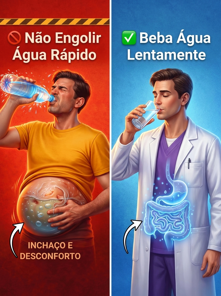 Essa sensação pesada no estômago não é apenas incômoda — é o seu corpo tentando te dar um sinal importante. Quando você ingere grandes quantidades de água rapidamente, o organismo não consegue absorvê-la de forma eficiente. Grande parte acaba sendo eliminada sem realmente hidratar suas células. A boa notícia? Existe uma forma muito mais inteligente e confortável de se hidratar — e poucas pessoas prestam atenção nisso.