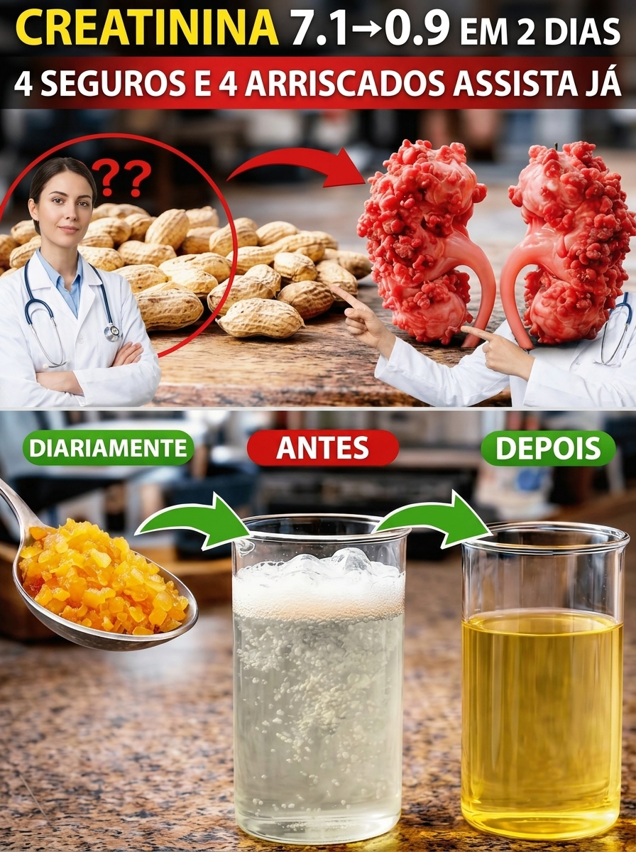 Você já deve ter visto aquelas publicações virais: uma pessoa preocupada com rins debilitados em um dia e, poucos dias depois, sorrindo com exames “perfeitos”. Tudo isso supostamente graças ao consumo de certas gorduras, como amendoim e nozes. A promessa? Reduzir a creatinina de 7,1 para 0,9 em tempo recorde. Para quem está lidando com exames alterados, isso parece um verdadeiro milagre. Mas será que isso é mesmo possível? Continue lendo, porque a verdade pode te surpreender — e pode salvar sua saúde.